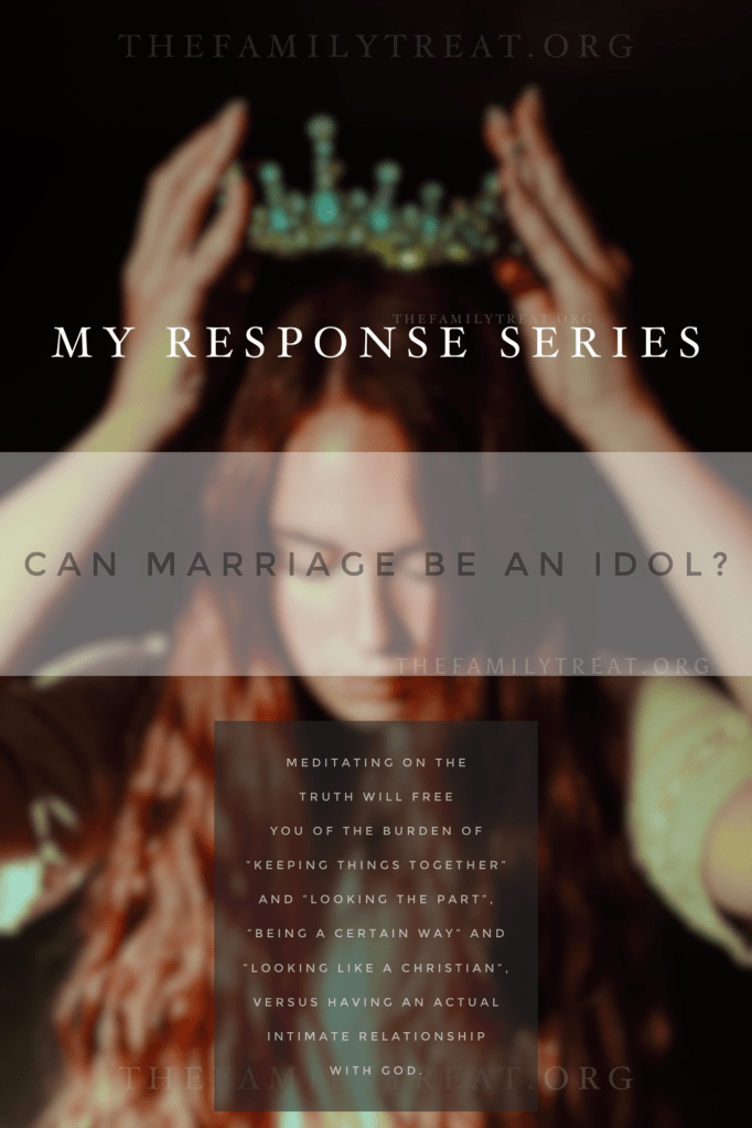 Hey! My name is Hannah! I have begun a series where I provide you with responses I give in some of the fb groups I am in. As they are private groups, I don’t share what the original post says verbatim, but the general topic of discussion, I do share that for context. I’m excited to share this response with you. The topic of discussion is “Can Marriage be an Idol?”. I hope this is an encouragement to you who may be going through this type of confusion and need clarity, as well as insight to those who are trying to support their friend. I would like to encourage you to consider joining fb groups to support you and find a sisterhood of likeminded women! I have a list of resources at the bottom of this page! Tap here to skip to it!! I’ve also added another permanent section called Language for Behavior at the bottom before the list of resources!